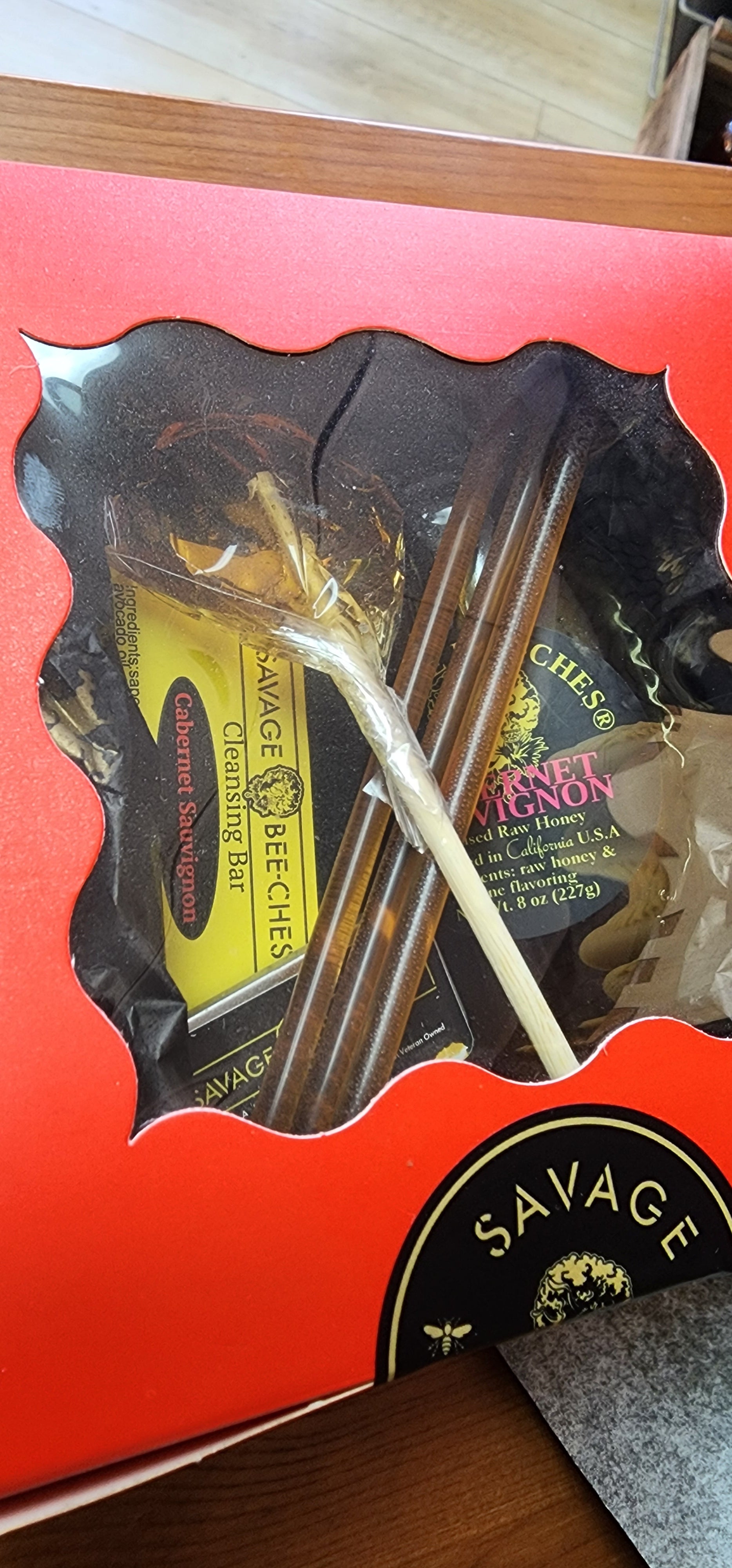 Rich, bold, and unforgettable. The Cabernet Collection brings together the best of our hive and vineyard-inspired creations: Cabernet-infused honey, a Cabernet beeswax soap, a pure beeswax salve, a wildflower lollipop, and three honey sticks. A unique, sophisticated gift set for wine lovers, foodies, and anyone who appreciates artisanal craftsmanship.